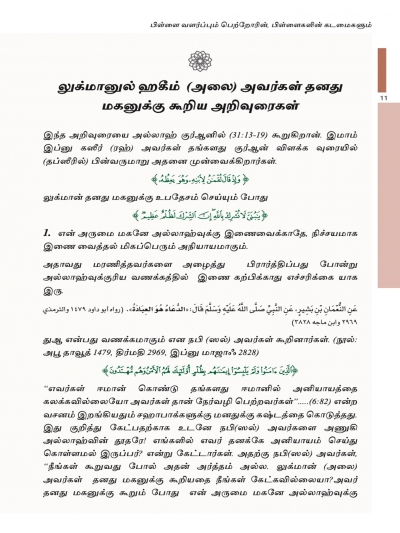 பிள்ளை வளர்ப்பும், பெற்றோரினதும் பிள்ளைகளினதும் கடமைகளும்